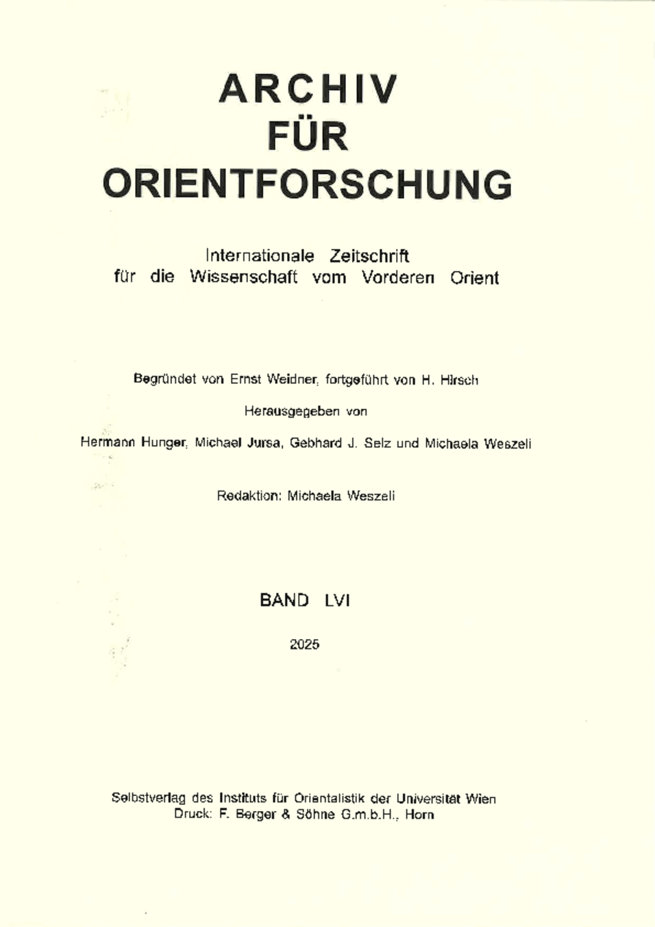 Band 56 (2025): Archiv für Orientforschung: Internationale Zeitschrift für die Wissenschaft vom Vorderen Orient